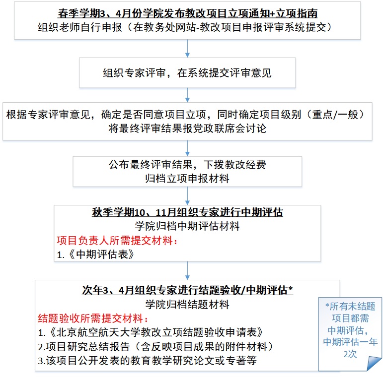 (一)“重点项目”和“一般项目”的立项工作,一般在每年的春季学期进行,学院发布“立项指南”,下发立项申报通知,并依据通知要求组织申报和评审;