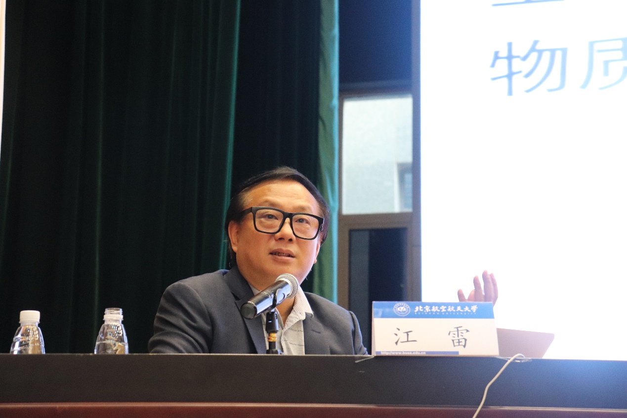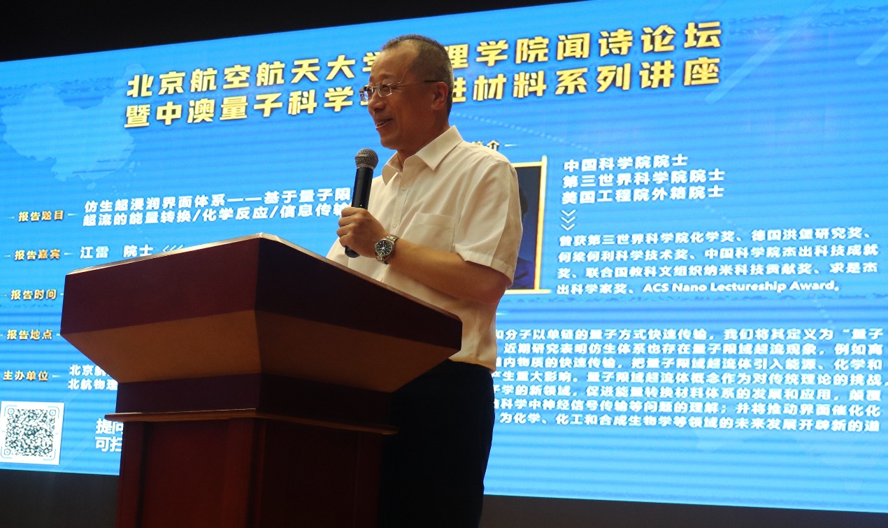 首先,物理学院吕广宏院长发表了热情洋溢的致辞,并隆重介绍主讲老师江雷院士,以及“仿生超浸润界面体系——基于量子限域超流的能量转换/化学反应/信息传输”的主题,现场掌声雷动。