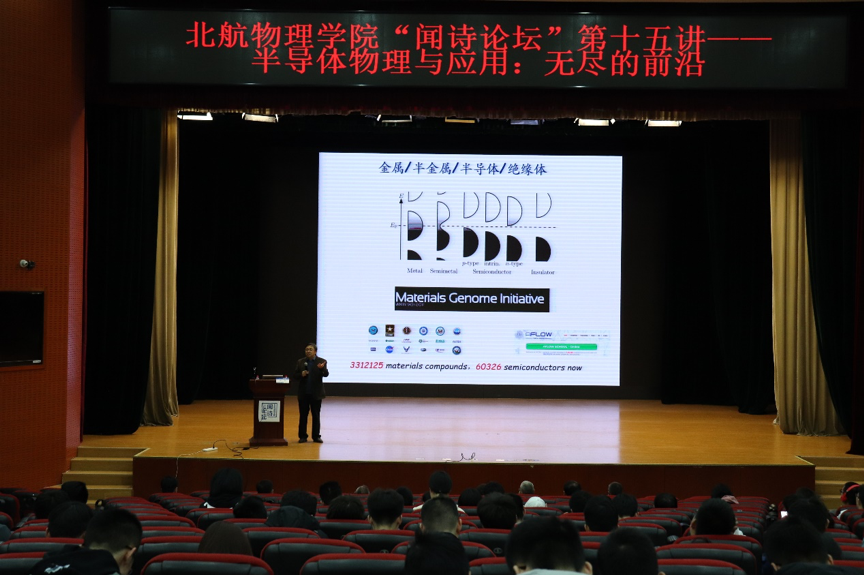 首先,物理学院院长吕广宏致辞并隆重介绍主讲人常凯院士。常凯院士长期从事凝聚态物理理论研究,主要研究半导体量子结构的电子态、关联激子态、自旋输运和磁性起源做出了一系列有国际重要影响的工作,得到国际同行的广泛关注。